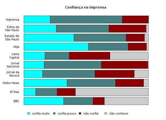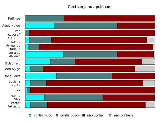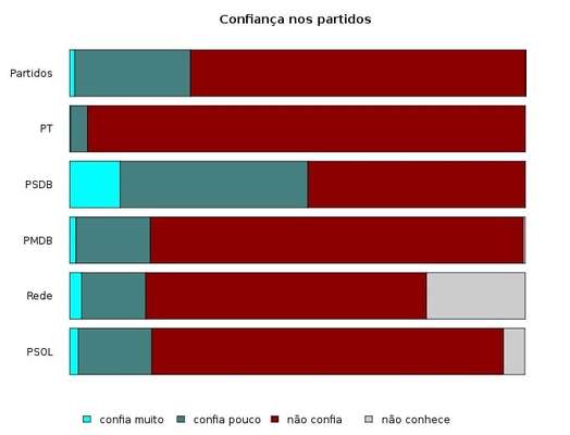 Assim, 8% citaram o ex-presidente Fernando Henrique Cardoso e 12%, o senador Aécio Neves (PSDB-MG). Os políticos que mais receberam a confiança dos entrevistados foram Geraldo Alckmin (29%), José Serra (23,8%), Aécio (22,6%) e Jair Bolsonaro (19,4%).