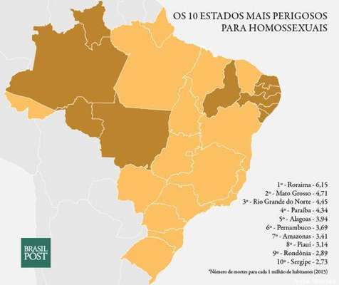 Segundo relatório do Grupo Gay da Bahia, de 2013 a 2014, um gay é morto a cada 28 horas no país. No ano passado, foram registrados 312 assassinatos de gays, travestis e lésbicas no país, garantindo o status de campeão mundial de crimes homo-transfóbicos.