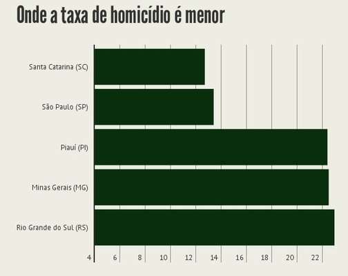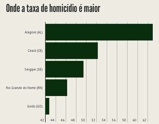 Do outro lado, Mato Grosso foi o que recebeu o título do local mais perigoso do Brasil. A taxa de homicídio do estado está entre as 10 maiores do país: 42 mortes a cada 100 mil habitantes.