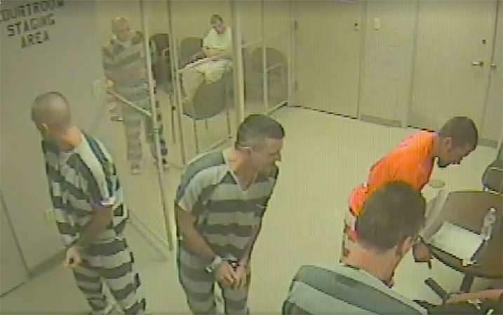 As imagens da câmera de segurança foram divulgadas pelo canal de televisão WFAA-TV. De acordo com informações da emissora, o homem teve um ataque cardíaco enquanto vigiava os presos.