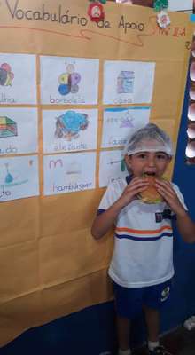 A professora pediu autorização da diretora e da nutricionista da creche e anunciou aos pequenos que ela compraria os materiais necessários para a “hamburgada”. “Como os alunos ficaram entusiasmados com a novidade, quiseram participar de todo o processo desde o preparo da comida.”