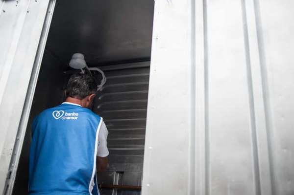 O “Banho de Amor” fornece duchas, consultas médicas e odontológicas, além de comida para os moradores de rua se alimentarem. “A maioria das pessoas não tomava um banho quente há anos, só em bicas ou com baldes”, ressalta Calmon.