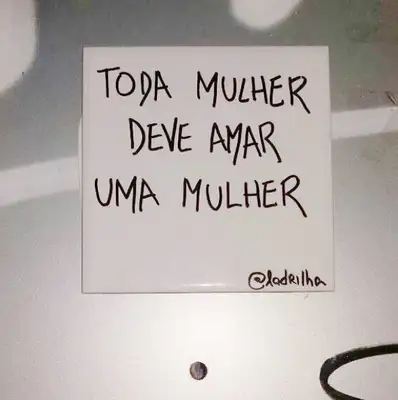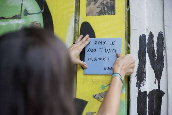 "O amor é isso tudo mesmo!" e "Toda mulher deve amar uma mulher" estão entre as frases coladas em ladrilhos no espaço público