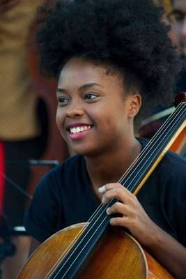 “A música é como se fosse a minha vida, eu não faço outra coisa sem ser isso. Ela representa tudo pra mim: a maneira como eu vejo o mundo, a minha filosofia e os meus ideais. Quando eu estava na escola, me perguntavam: o que você faria se não fosse musicista? Eu não tinha a menor ideia de como responder isso”, afirma a violoncelista Kely Pinheiro, de 20 anos.