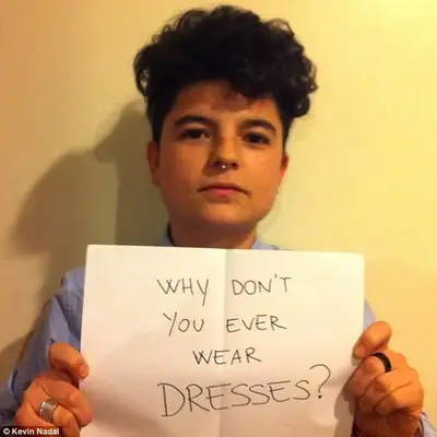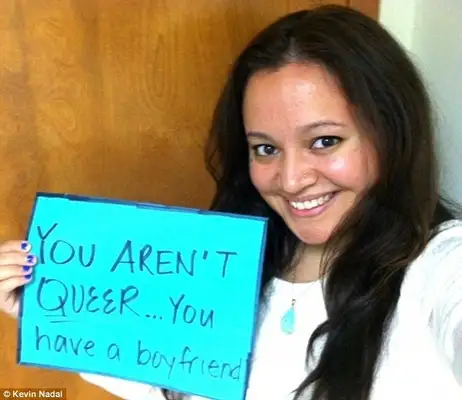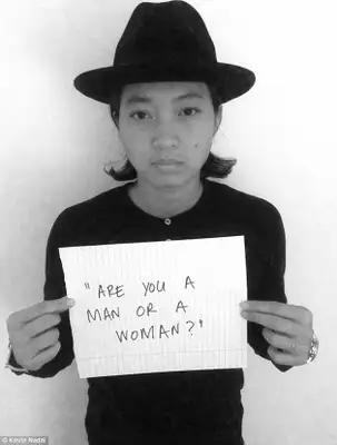 Onde está seu namorado?" - © Kevin Nadal "… Eu não estou sendo homofóbico, você é que está sendo muito sensível…" - © Kevin Nadal "Eu só não entendo por que você iria querer mutilar seu corpo" - © Kevin Nadal "Você não é gay… Você tem um namorado" - © Kevin Nadal "Onde estão sua esposa e filhos?
