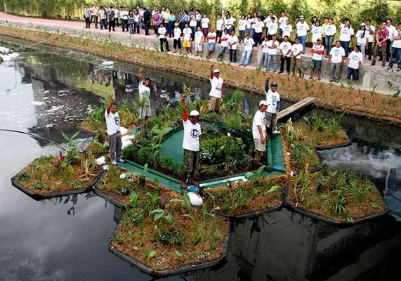 Mas um sistema ecológico criado na Inglaterra pode ser uma boa solução para esse problema. O Biomatrix é uma obra de engenharia flutuante de baixo custo que pode ser instalada em reservatórios, canais e lagos contaminados. Sua função: unir a despoluição dos rios à preservação da paisagem natural.