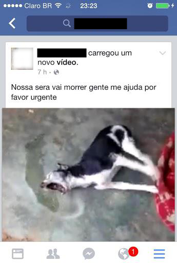 Ao invés de procurar ajuda profissional veterinária com urgência, preferiu usar as redes sociais para pedir ajuda e postou 3 vídeos e muitas fotos da lamentável situação de dor e sofrimento que o animal enfrentava.
