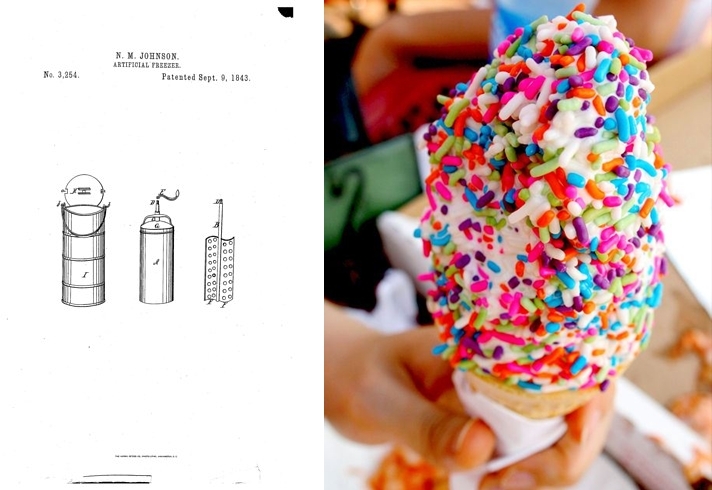 Nancy Johnson inventou o freezer de sorvete, em 1843, o patenteamento de um projeto que ainda é usado até os dias atuais, mesmo após o advento da fabricantes de sorvete elétrica. Obrigado, Nancy Johnson. Obrigado.