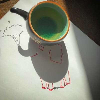 Enquanto tomava chá, o cineasta e artista belga Vincent Bal percebeu que a sombra da sua xícara projetava a intrigante silhueta de um elefante. Mal sabia ele que aquela inesperada coincidência seria o pontapé inicial de uma incrível série de desenhos, feitos a partir da projeção das sombras de objetos do dia a dia.