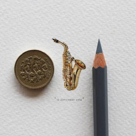 Para se ter uma ideia do tamanho da pintura, objetos são colocados ao lado da imagem. É realmente incrível como detalhes podem ser feitos em tão pequeno espaço. Confira algumas imagens: