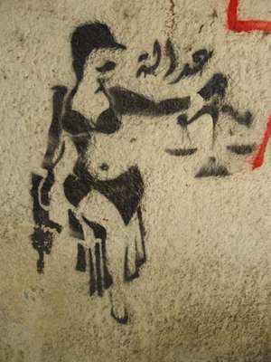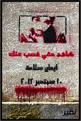 Graffitis, estêncils, painéis e outras intervenções urbanas dão voz a histórias de impunidade como o caso de Iman Salama, assassinada a tiros após enfrentar um homem acusado de assediá-la na rua.