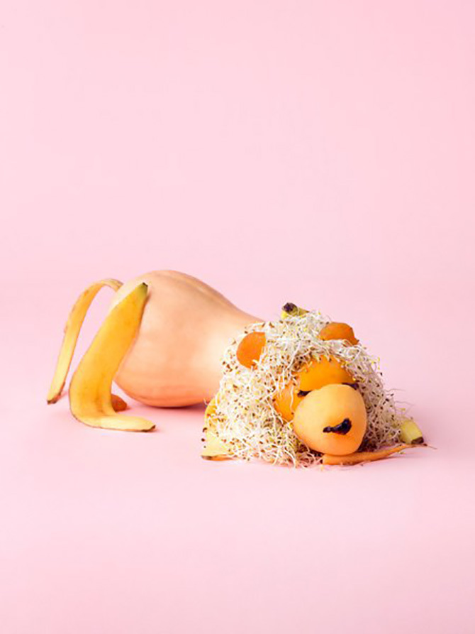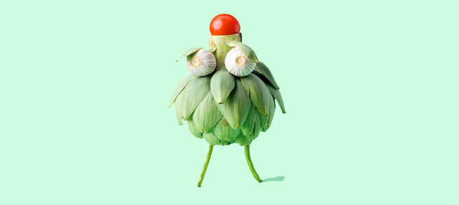Ele usa tomate, cebola, pimentão, limão, espiga de milho, pepino, abacate e diversos tipos de alimentos para criar suas artes, que são muito divertidas. Mais sobre o trabalho do artista você confere no site oficial dele.