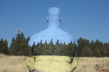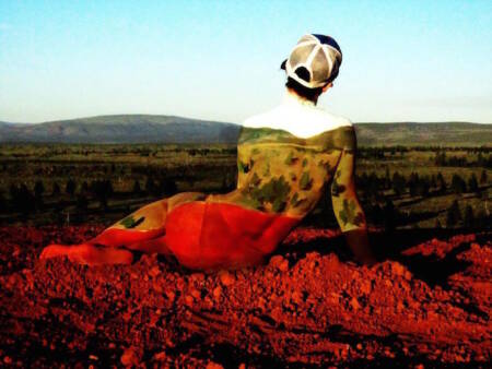 Às vezes, ela usa de criatividade e bom humor para brincar com o seu trabalho. Uma foto caracteriza um homem que tem apenas um buraco gigante pintado em seu estômago. Podemos ver através de seu torso e as árvores atrás dele.