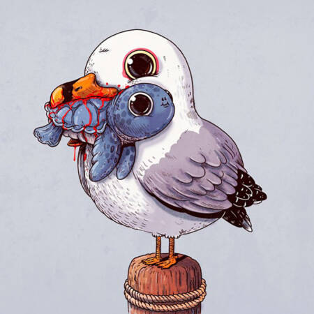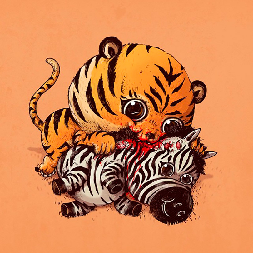 Alex Solis criou uma coleção de ilustrações que inserem animais fofos como assassinos, um retrato da cadeia alimentar do nosso planeta.