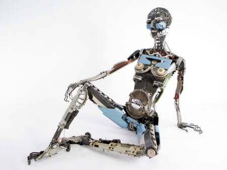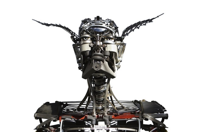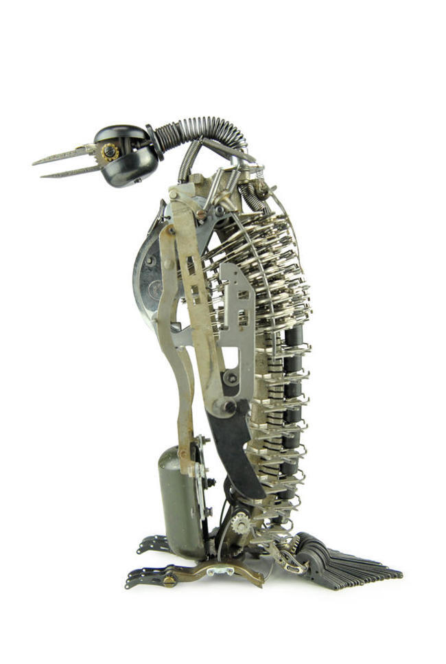 Mayer coleciona máquinas de escrever antiga e as desmonta. O que ele faz com essas peças de sucata de metal, bobinas, chaves e é transformá-los em esculturas mecânicas de seres humanos em tamanho natural e animais que parecem que estão apenas esperando o momento certo para saltar para a vida.