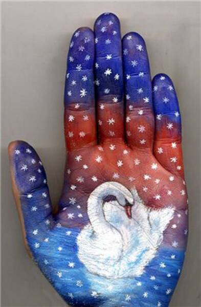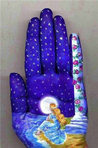 Artista usa a palma de mão para criar imagens inspiradas em contos de fadas