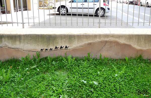O princípio da arte de rua é subverter o ambiente urbano para chamar nossa atenção. Mas alguns artistas usam, técnicas diferentes para adaptar sua arte ao local em que ela se encontra, criando uma interação entre a pintura 2D e o entorno 3D.