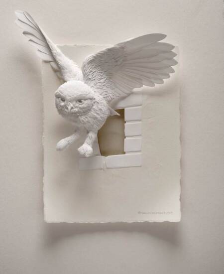 O que talvez seja o mais interessante é que o trabalho do escultor preenche a lacuna entre 2D e 3D. O papel em si pode ser plano e simplista, mas os trabalhos de arte resultantes sobem acima de sua superfície para adicionar uma sensação de vivacidade.