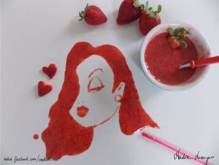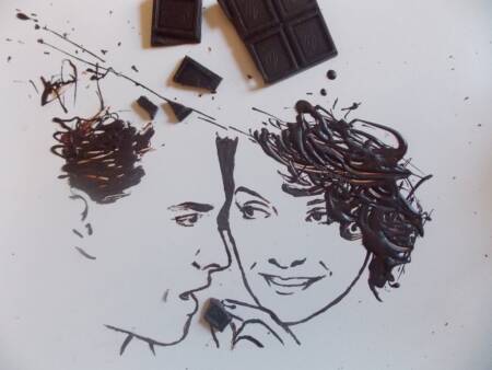 As peças de arte da chef de cozinha e mestre ilustradora Nadia Luongo, conhecida como Nadien Ska, desafiam o conceito de que a arte não deve ser nem perecível nem comestível. Entre seus mais deliciosos confeitos estão a reprodução de Johnny Depp e Juliette Binoche, em uma cena do filme “Chocolate”, feita a partir de chocolate, é claro. Há também a personagem Jessica Rabbit, feita de molho de morango; Alex de “Laranja Mecânica” feito com leite, e Mick Jagger feito de “Brown Sugar”.