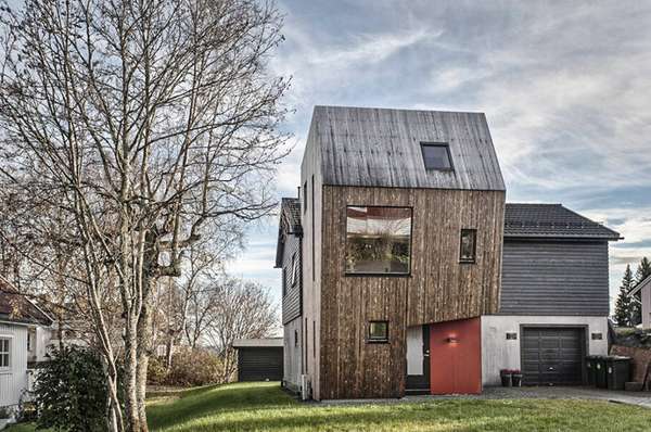 Na Noruega, uma moderna casa revestida a madeira, desafia os limites da física e, sobretudo, os conceitos da arquitetura tradicional.Assim, a geometria assimétrica do local é percebida tanto dentro como fora da construção.