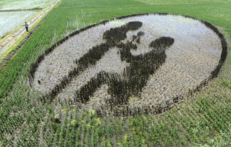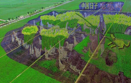 Chineses usam técnicas de agricultura para criar imagens em campos de arroz
