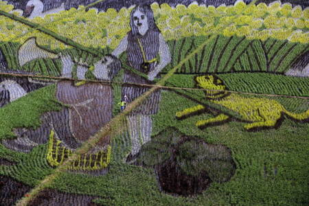 Os produtores de arroz na China têm cuidadosamente plantado suas colheitas para criar grandes obras de arte em 3D. Estas peças, à base de plantas, parecem ter sido feitas com tinta spray.