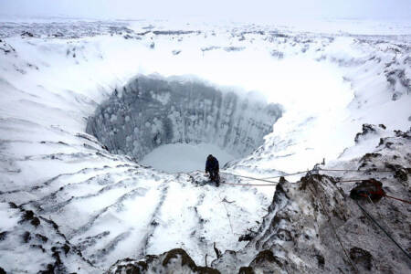 Cientistas registram incríveis fotos dentro de uma cratera na Península de Yamal