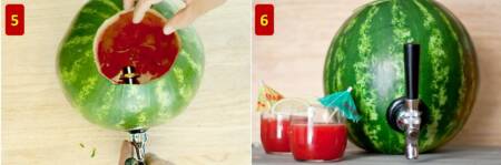 Fácil de fazer, é preciso apenas da casca da melancia, uma furadeira, alguns utensílios domésticos e uma torneira pequena para chope, que pode ser comprada em lojas que vendem produtos hidráulicos. A polpa retirada da melancia será usada para fazer um drinque ou suco.