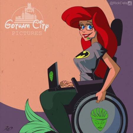 Rick Cellis é um artista que recriou um crossover entre Disney e Batman em uma de suas galerias de desenhos. Ele insere algumas princesas da Disney e personagens de animações como se fossem heróis e vilões da série.