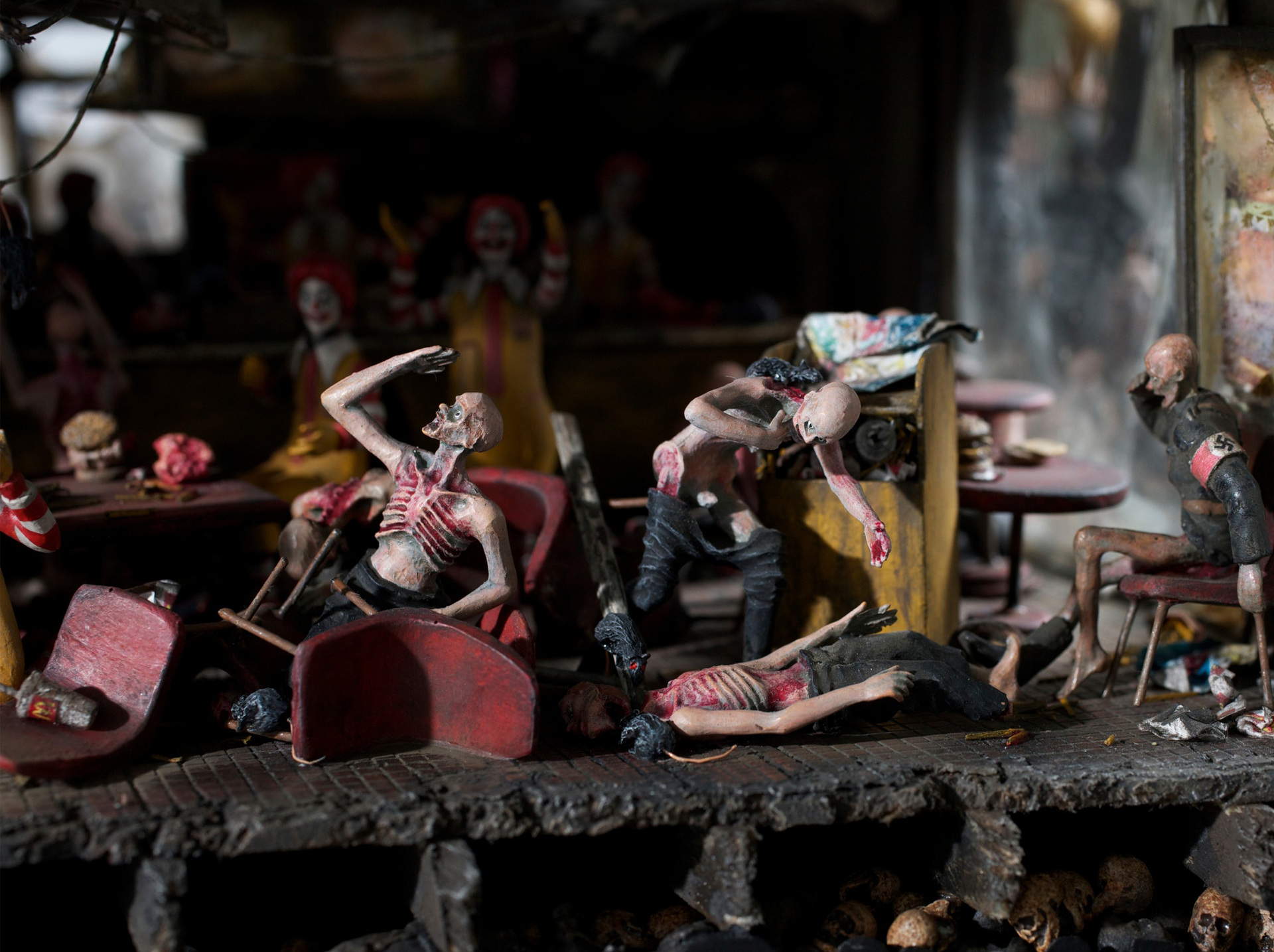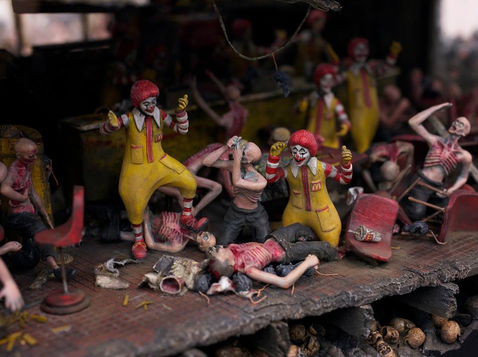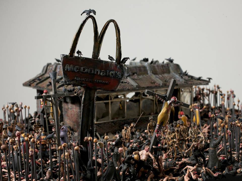 Dupla de artistas cria maquetes do inferno juntando o McDonalds com nazistas