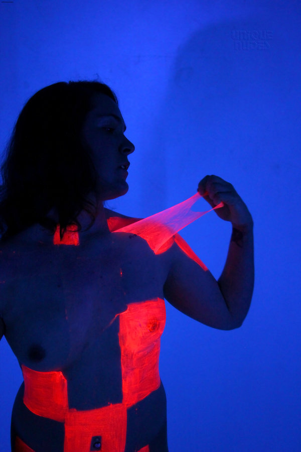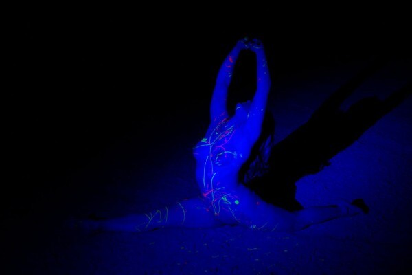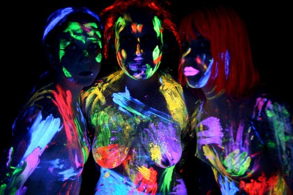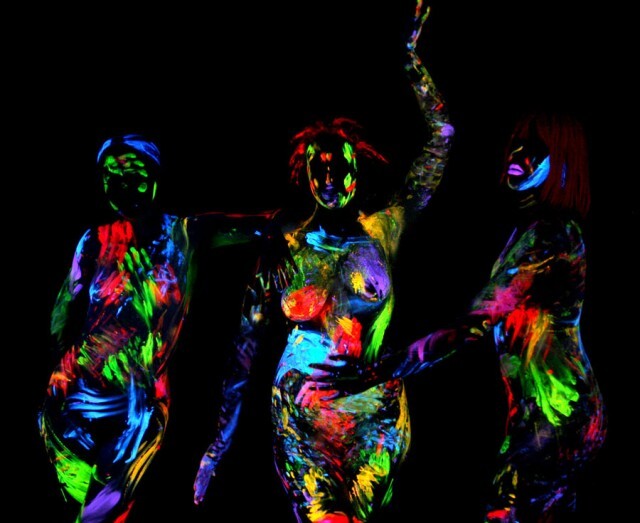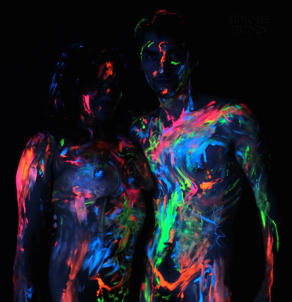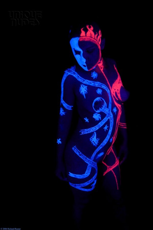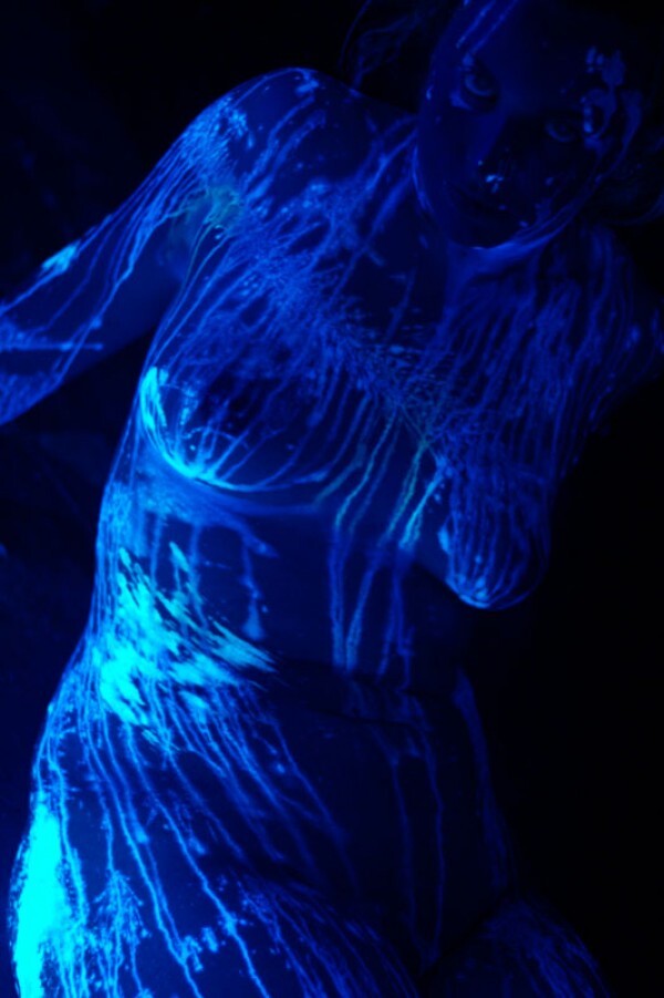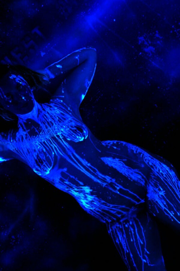 Richard Rasbner, fotógrafo que vive na Califórnia, pinta modelos com tinta invisível. O efeito só ocorre quando elas elas são fotografadas no escuro com uma luz especial.
