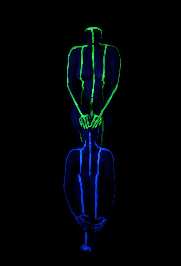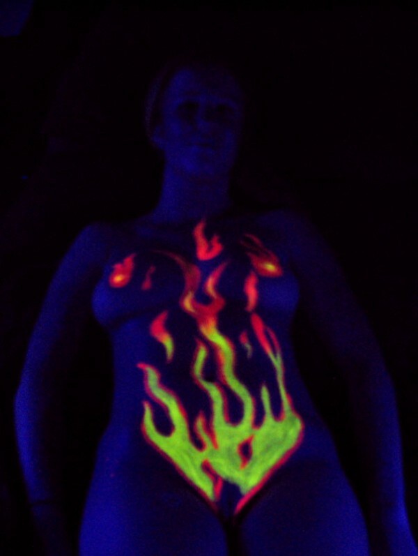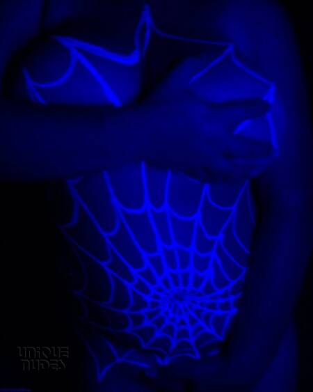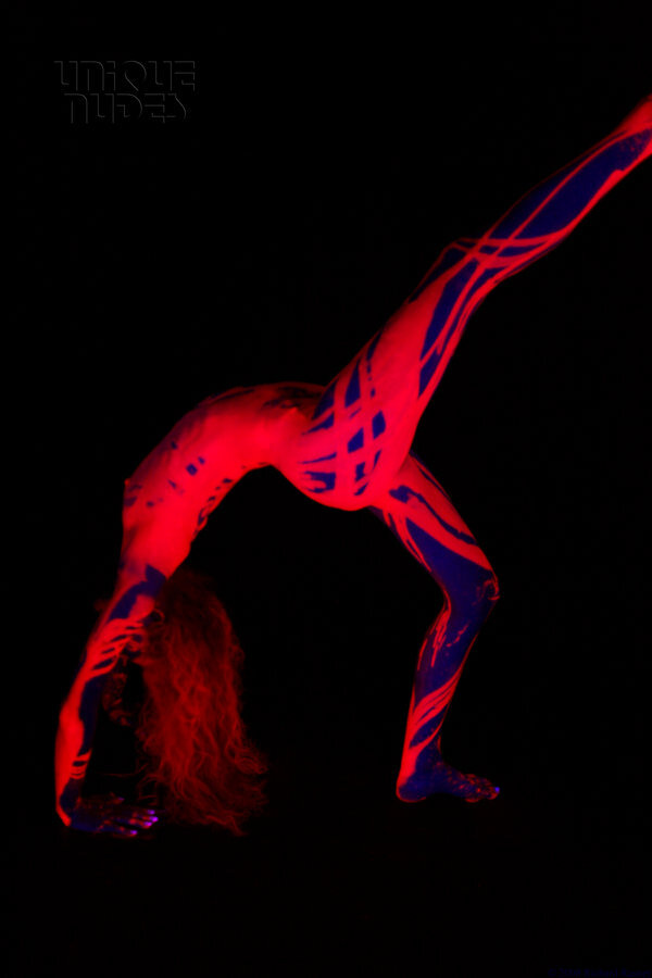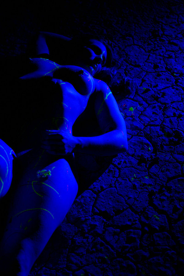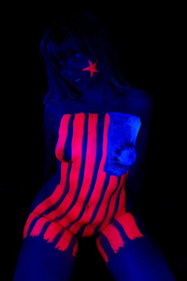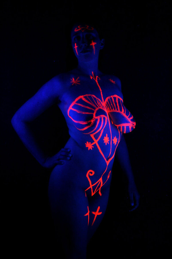 Richard Rasbner, fotógrafo que vive na Califórnia, pinta modelos com tinta invisível. O efeito só ocorre quando elas elas são fotografadas no escuro com uma luz especial.
