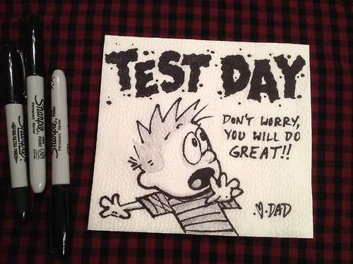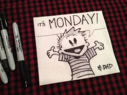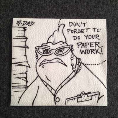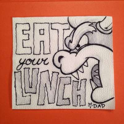 Em guardanapos, pai desenha e manda recados positivos na lancheira do filho