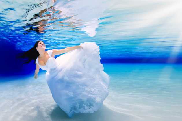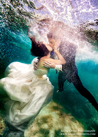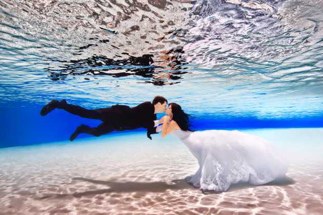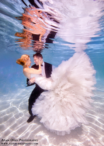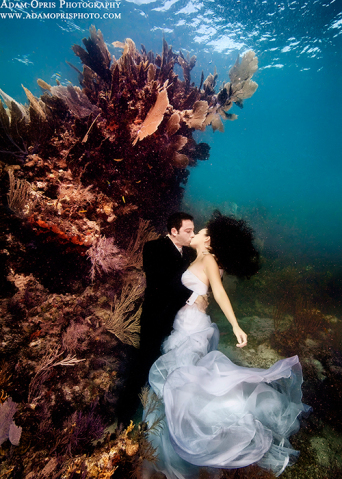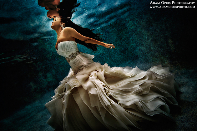 O fotógrafo de casamentos Adam Opris é daqueles que ousam em seus cliques. Suas fotografias são todas em baixo d’água! Isso mesmo. As imagens são feitas no mar ou em piscinas próprias para esse tipo de ensaio.