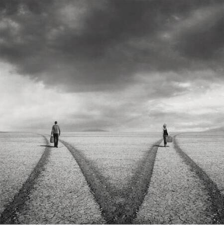 O artista escolheu uma variedade de cenários, incluindo picos de montanhas, o mar aberto, e até mesmo um terreno aberto, com dois caminhos diferentes que mostram casais em um momento de despedida. Confira mais do trabalho de Derwinska em Magic-art-photography.