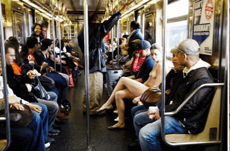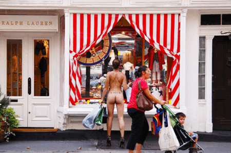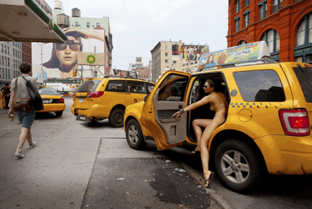 A série intitulada “Nue York” traz retratos nus da própria artista em cenários urbanos nova-iorquinos, passando pelas ruas, transporte público, lojas e até um avião. O registro da nudez nestes locais foi feito para incentivar o debate sobre a importância que as pessoas dão para as roupas e o julgamento que todos nós fazemos em cima da maneira como alguém se veste, a avaliação prévia da vida de alguém baseado em pedaços de pano que deveriam ser usados apenas para se proteger do frio. Confiras as imagens do ensaio: