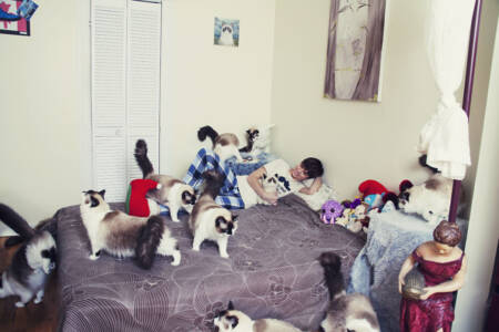Você que tem gatos sabe o quanto eles gostam de ocupar todos os espaços da casa. Pensando nisso, a fotógrafa Andreanne Lupien criou o ensaio ”Crazy Cat Lovers”, onde ela registra a vida de pessoas apaixonadas por gatos e registra os vários espaços que os felinos ocupam ao redor de seus donos.