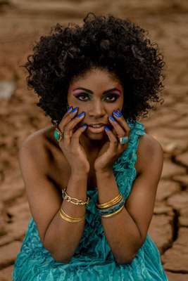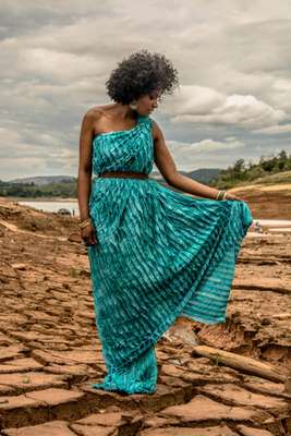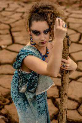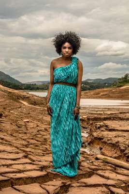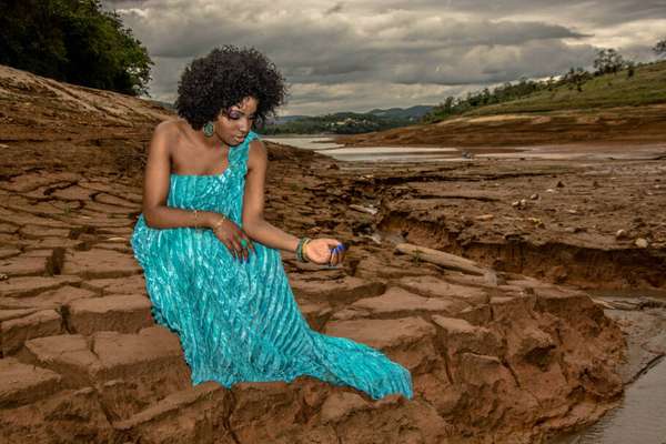 Ele foi até uma represa de Nazaré Paulista, que faz parte do Sistema Cantareira, e fotografou modelos com tecidos azuis, representando a água.