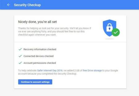 Até a quinta feira, 11, o Google dá um bônus de 2 GB grátis no Google Drive para aqueles que verificarem a segurança de suas contas. É necessário rever as informações de contato para recuperação de conta e analisar os aplicativos e dispositivos que têm acesso às suas informações.