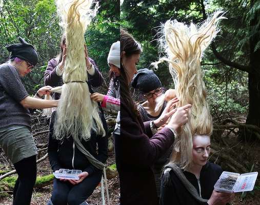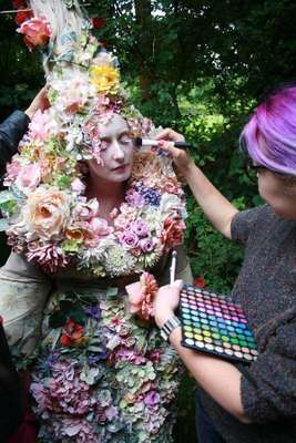 Para começar o trabalho, com uma tesoura , luvas de jardinagem e roupas velhas , Kirsty e sua equipe buscaram as flores por toda a floresta em um processo que levou cerca de 4 horas.