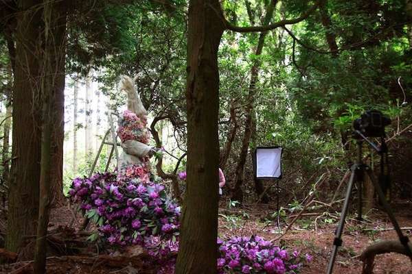 Inspirado em “Alice no País das Maravilhas”, 1000 flores cobrem modelo em ensaio fotográfico