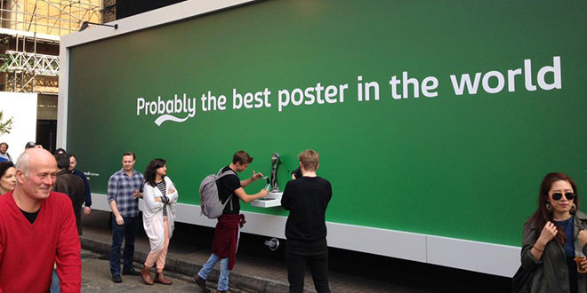 4. O melhor outdoor do mundo: a marca de cerveja Carlsberg colocou uma torneira em um outdoor, em que pedestres podiam se servir gratuitamente com a bebida da marca.