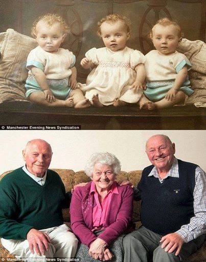 Está circulando pelas redes sociais uma imagem de três irmãos que completaram este ano seus 80 anos de vida. De acordo com a página World of Creativity, os médicos disseram que eles não sobreviveriam. Hoje os trigêmeos comemoram juntos.