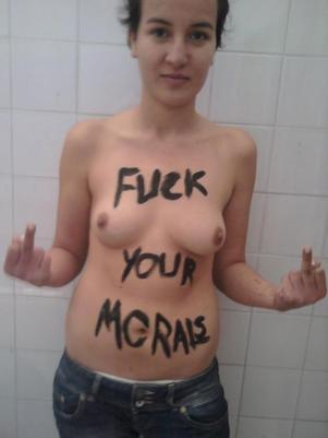 A jovem Amina, de 19 anos, postou fotos de seios de fora e com as seguintes frases escritas no próprio corpo: “Meu corpo pertence a mim e não é a fonte da honra de ninguém” e “Foda-se a moral de vocês”. As imagens foram publicadas na página que ela criou no país em apoio ao grupo feminista Femen.