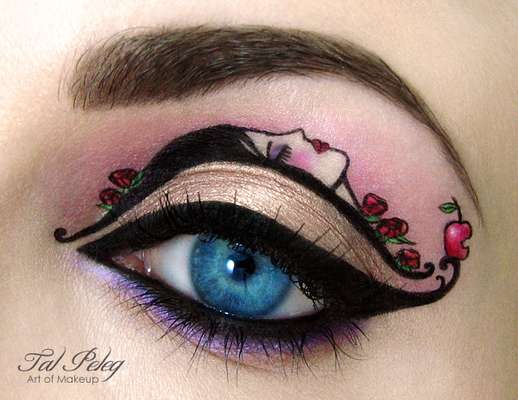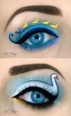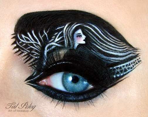 A maquiadora israelense consegue produzir inusitadas imagens produzindo arte em torno de um olho, transformado no centro de uma tela humana.