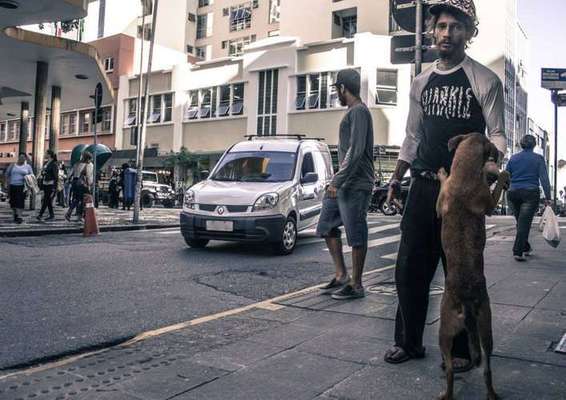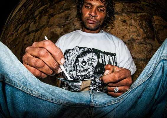 As fotos da nova coleção da marca de camisetas Sharkle mostram consumo de crack e pedintes na rua; objetivo é chamar atenção para os “não vistos”