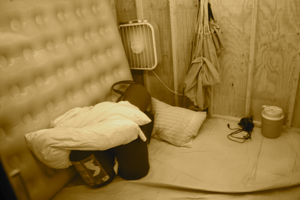 Apoiada em troncos de árvores, o refúgio foi feito basicamente de madeira. Com uma área de cerca de 6 metros quadrados, a pequena casa é simples, mas aconchegante e muito charmosa.