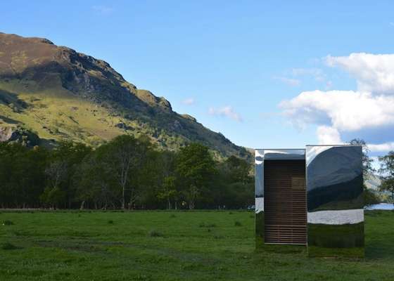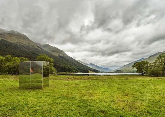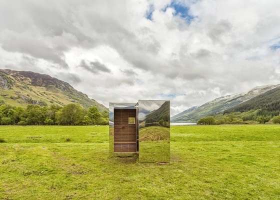 O estudantes de arquitetura Angus Ritchie e Daniel Tyler projetaram uma pequena casa espelhada em um parque nacional escocês. Ela reflete os vales e lagos que a circulam.