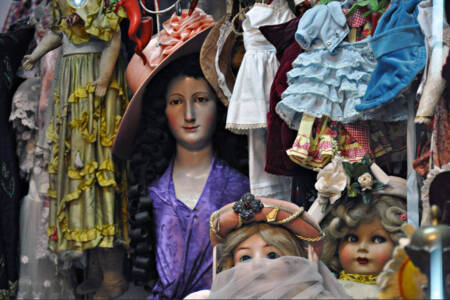 Ao longo destes corredores lotados, fantoches da classe trabalhadora e aristocrática são todos tratados da mesma forma, preciosas bonecas Lenci de cerâmica recebem a mesma atenção e cuidado que as bonecas de lata, populares nos lares mais pobres da cidade.