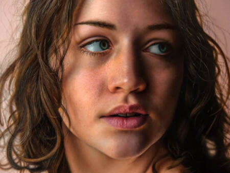 Quando vemos as obras de Marco Grassi pela primeira vez, facilmente confundimos com fotos. As modelos olham para longe, tem uma pele aveludada, com manchas, o cabelo esvoaçante, os lábios rachados, todos os mínimos detalhes.